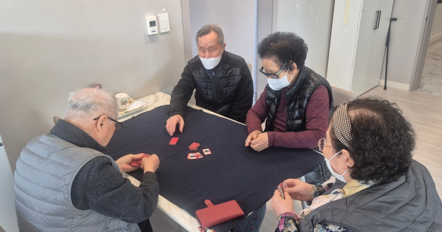 주말에 여가활동 시간에 고스톱 치시는 어르신들 모습 이랍니다^^